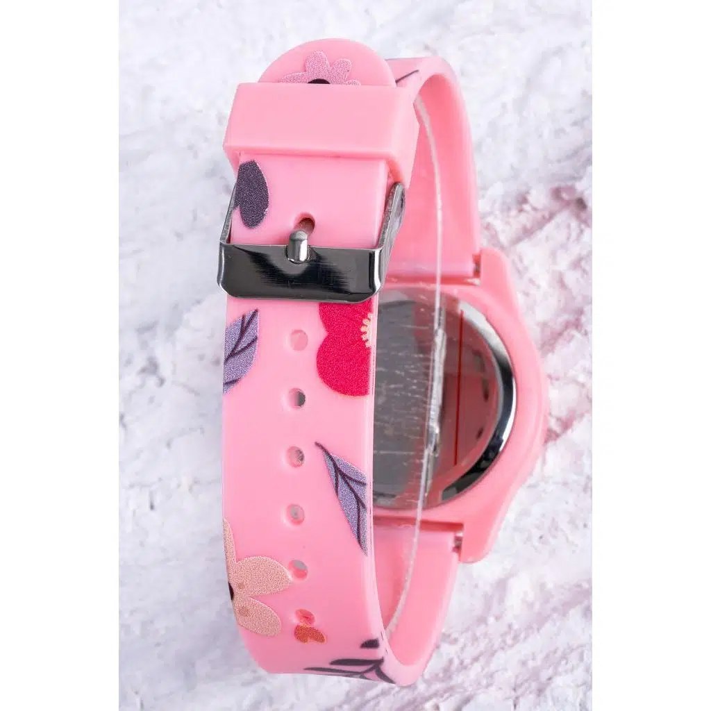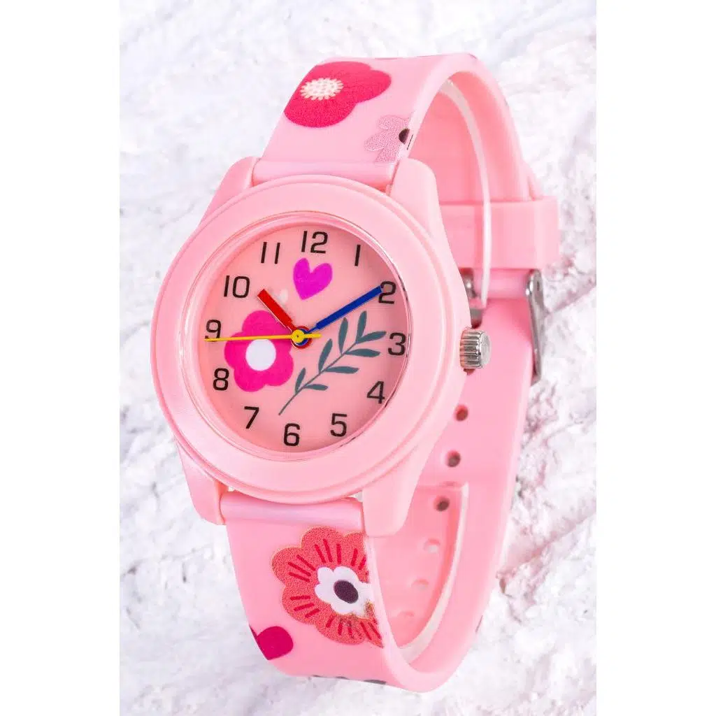 Pembe Renk Kız Çocuk Saati Analog Kalpli Kadranlı Figür Kol Saati Cüzdan Hediyeli ST-304400